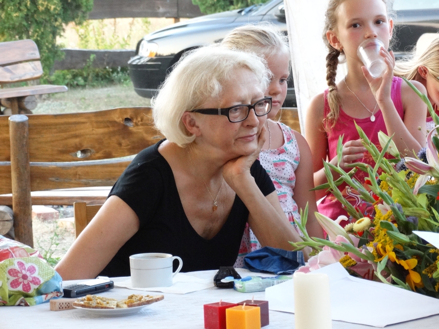 A cóż ja? Przypomnę tylko, że było 35 stopni w cieniu, no i aura ta, trochę nam namieszała. Zlądowałam dopiero wieczorem. Pozostał u mnie niedosyt wspomnień, spojrzeń, uścisków, rozmów, ech… A te zdjęcia z dziewuszkami są cudowne, ten blondas na ściernisku powala, nocne dziewczyn rozmowy, disco polo z łobuzami nad ranem – fajnie ze starszymi wyjechać.