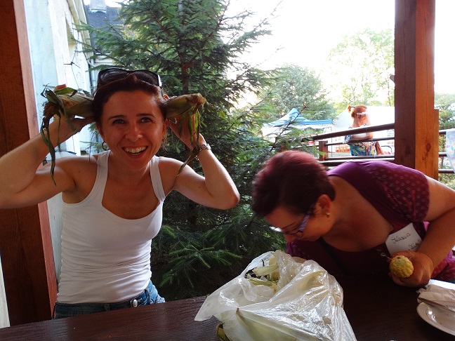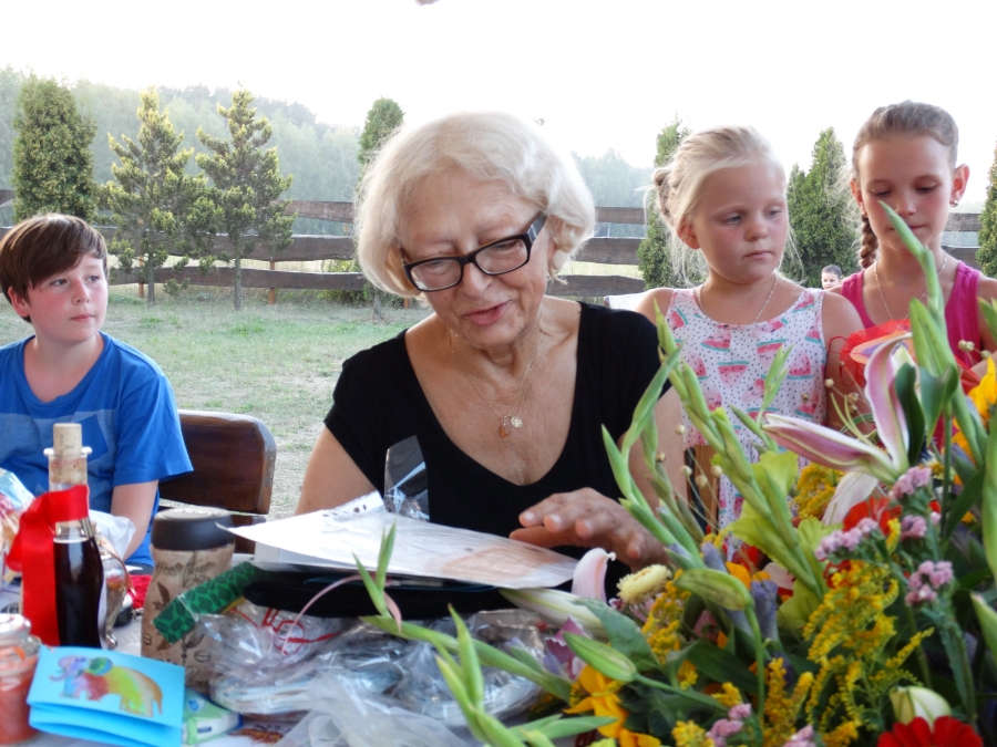 A cóż ja? Przypomnę tylko, że było 35 stopni w cieniu, no i aura ta, trochę nam namieszała. Zlądowałam dopiero wieczorem. Pozostał u mnie niedosyt wspomnień, spojrzeń, uścisków, rozmów, ech… A te zdjęcia z dziewuszkami są cudowne, ten blondas na ściernisku powala, nocne dziewczyn rozmowy, disco polo z łobuzami nad ranem – fajnie ze starszymi wyjechać.